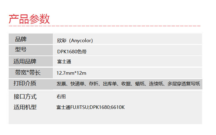 欣彩/Anycolor DPK1680色带/碳带 含带芯 适用富士通FUJITSU DPK1680 6610K